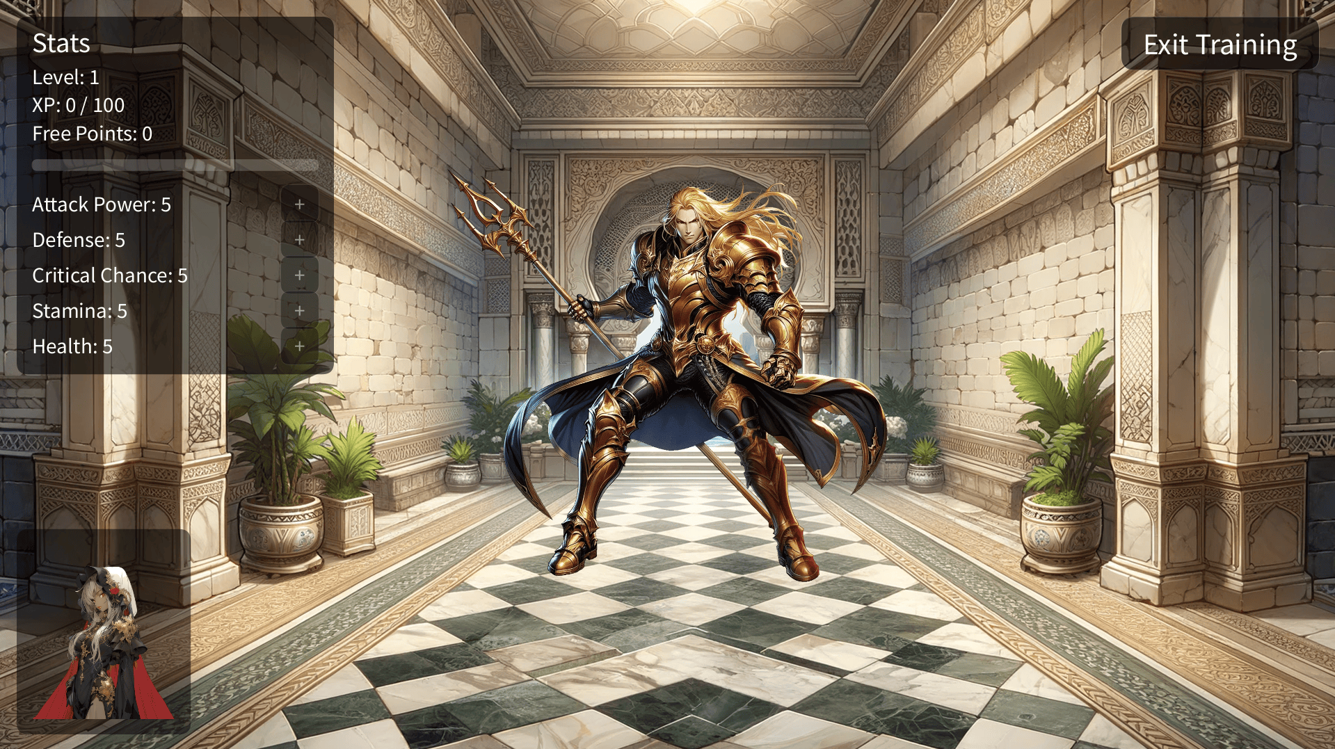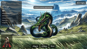 Train to gain experience, allocate stat points, and face stronger enemies in arena battles where strategy matters. Defeat has real consequences, rewarding careful planning and smart builds.